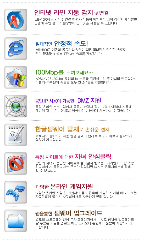 ADSL/VDSL/Cable ¸ðµ©ÀÇ full¼Óµµ¸¦ Áö¿øÇÏ´Â °Í »Ó¸¸ ¾Æ´Ï¶ó ¿£ÅäÇǾÆ/À̺§¸®/ ÆÄ¿ö·£ÀÇ ¼Óµµµµ ¸ðµÎ ¾ÈÁ¤ÀûÀ¸·Î Áö¿øÇÕ´Ï´Ù.
